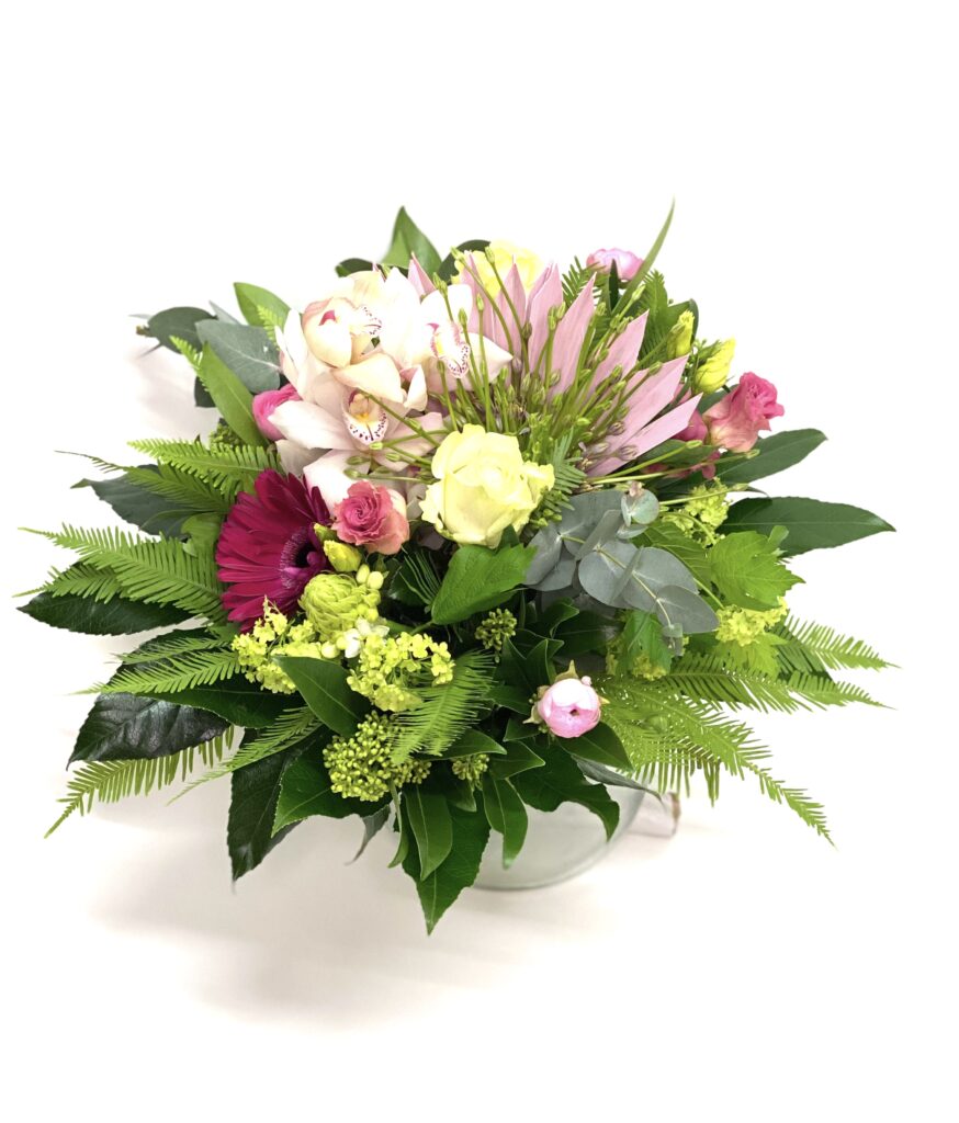 Dit boeket is voorzien van seizoensbloemen die wij selecteren. We garanderen bij dit boeket het design, waarbij het boeket elke keer weer een feestje is door de veelzijdigheid en seizoensgebondenheid van de bloemsoorten die we gebruiken.